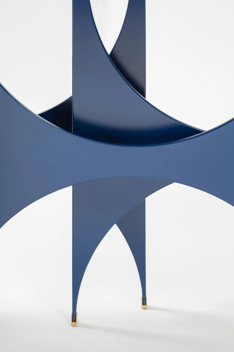 The Butterfly Console, crafted from powder-coated steel, makes a striking statement with its deep crimson finish and dynamic silhouette. Bold cutouts and arched forms create a sculptural play of symmetry and light, blending modern artistry with functional design. Ideal for entryways, dining areas, or living rooms, it brings architectural drama and vibrant energy to any space. Available in custom finishes to complement your style.
